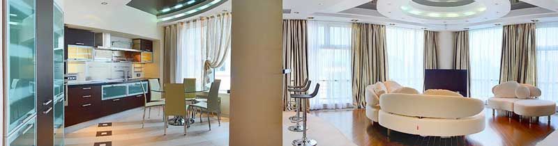 В комплексное оформление входит: шторы, карнизы, покрывала, подушки.