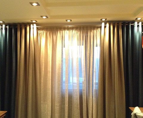 Это комбинация полотен, различных по плотности: обычно это легкий тюль в сочетании с более плотными портьерами, которые кроме выполнения декоративной функции могут выполнять роль «рабочей» шторы, служащей для затемнения.